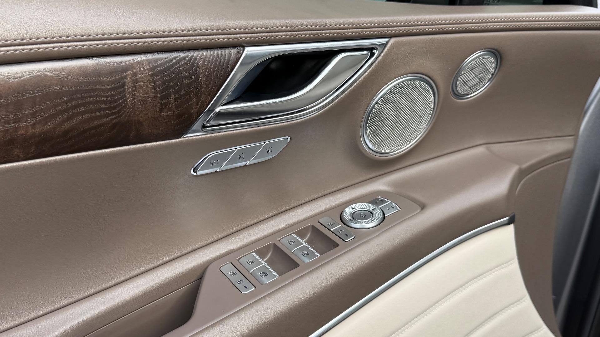 *** ONE OWNER/MSRP $67K/ PRESTIGE PKG / ADVANCED PKG/ 22” ALLOY WHEELS WITH ALL SEASON TIRES/ PANORAMIC ROOF / HEAD-UP DISPLAY / LEXICON PREMIUM AUDIO SYSTEM W/ 21 SPEAKERS / HEATED & VENTILATED SEATS / 3-ZONE CLIMATE CONTROL / SURROUND VIEW MONITOR / SMART CRUISE CONTROL / ACTIVE NOISE CONTROL / WIRELESS PHONE CHARGER / GENESIS DIGITAL KEY ** this savile silver exterior with vanilla beige and ultramarine blue interior features the prestige package including nappa leather seating surfaces, 20” alloy wheels, panoramic sunroof, head-up display, lexicon premium audio system with 21 speakers, surround view monitor, smart cruise control, and active noise control; interior comfort highlights include heated and ventilated front seats, 3-zone climate control, adjustable ambient lighting, manual rear door sunshades, dual front and rear usb ports, 14.5” hd touchscreen navigation, apple carplay & android auto, and wireless phone charger; safety technology includes forward collision-avoidance assist, blind-spot view monitor, safe exit assist, and parking distance warning; total price $67,560, and much more... *** CARFAX CERTIFIED & VA INSPECTED *** NATIONAL SHIPPING AT ADDITIONAL COST *** REMAINING FACTORY WARRANTY ***