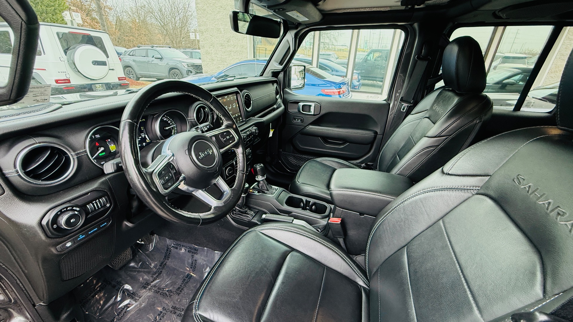 *** ONE OWNER/ MSRP $59K / COLD WEATHER GROUP/ TRAILER-TOW AND HEAVY- DUTY ELECTRICAL GROUP/ BLACK 3 PIECE HARD TOP/ GRANITE CRYSTAL METALLIC / LED PREMIUM HEADLAMPS / HEATED FRONT SEATS / HEATED STEERING WHEEL / 20” FULLY-PAINTED ALUMINUM WHEELS *** this granite crystal metallic exterior with black interior is equipped with a 2.0l dohc direct injection turbo plug-in hybrid engine and 8-speed automatic transmission with full-time 4wd; top features include leather-trimmed seats with sahara logo, uconnect 4c nav with 8.4-inch display, apple carplay & android auto, led lighting group, premium audio system, heated front seats, heated steering wheel, remote start system, parkview rear backup camera, selec-speed control, hill-start assist, ambient led interior lighting, automatic climate control, steering-wheel-mounted audio controls, and 20” fully-painted aluminum wheels; optional equipment includes customer preferred package 29p ($1,145), trailer-tow and heavy-duty electrical group ($995), black 3-piece hard top ($1,695), granite crystal metallic clear-coat exterior paint ($395); destination charge $1,595; total price $59,620, and much more… *** CARFAX CERTIFIED & VA INSPECTED *** NATIONAL SHIPPING AT ADDITIONAL COST *** REMAINING FACTORY WARRANTY ***