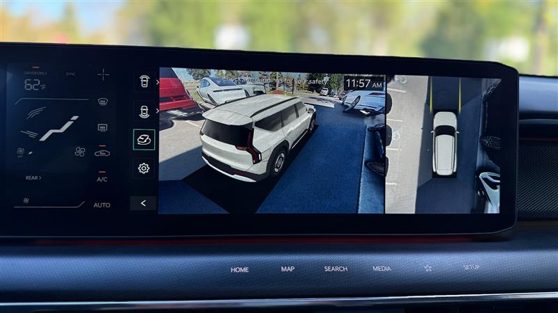 *** ONE OWNER / MSRP $76K / DUAL 12.3'' SCREEN PANORAMIC DISPLAY NAVI / DRIVER ASSIST PKG / SURROUND VIEW MONITOR & BLIND SPOT VIEW MONITOR / HEATED & VENTILATED 2ND / 20'' ALLOY WHEELS / DUAL SUNROOFS / HEAD-UP DISPLAY/ MERIDIAN PREMIUM AUDIO SYSTEM*** this aurora black pearl exterior with gray interior is equipped with 99.8 kwh lithium-ion battery, dual-motor e-awd, dc fast charge port (800v) with heat pump, on-board power generator (v2l) connector, gt-line exterior & interior styling, increased towing capacity, self-leveling rear suspension, driver memory seat/steering/outside mirrors, driver power tilt seat with leg support & front passenger comfort tilt seat with leg support, heated power tilt & telescoping steering wheel, heated & ventilated 2nd-row captain’s chairs (2 seats) with 2nd-row retractable storage console, smartphone digital key (kia connect), meridian premium audio, siriusxm radio (trial), bluetooth hands-free system, wireless device charger, 12.3” navigation with dual 12.3” panoramic displays, surround view monitor, blind-spot view monitor, head-up display, remote smart parking assist 2, navigation-based smart cruise control, highway driving assist 2, forward collision-avoidance assist 2, blind-spot collision-avoidance assist, rear cross-traffic collision-avoidance assist, parking distance warning – forward/reverse/side, rearview monitor, safe exit assist, dual front advanced airbags & driver’s knee airbag, front center & full-length curtain airbags, 21” alloy wheels, dual sunroofs (2nd row fixed), smart power liftgate, digital pattern lighting grille, roof rails, rear spoiler & rear privacy glass, tire mobility kit (in lieu of spare tire), plus accessories: rear bumper applique (gt), carpeted floor mats (6-passenger), cargo net, cargo tray (folding). *** CARFAX CERTIFIED & VA INSPECTED *** NATIONAL SHIPPING AT ADDITIONAL COST *** REMAINING FACTORY WARRANTY ***