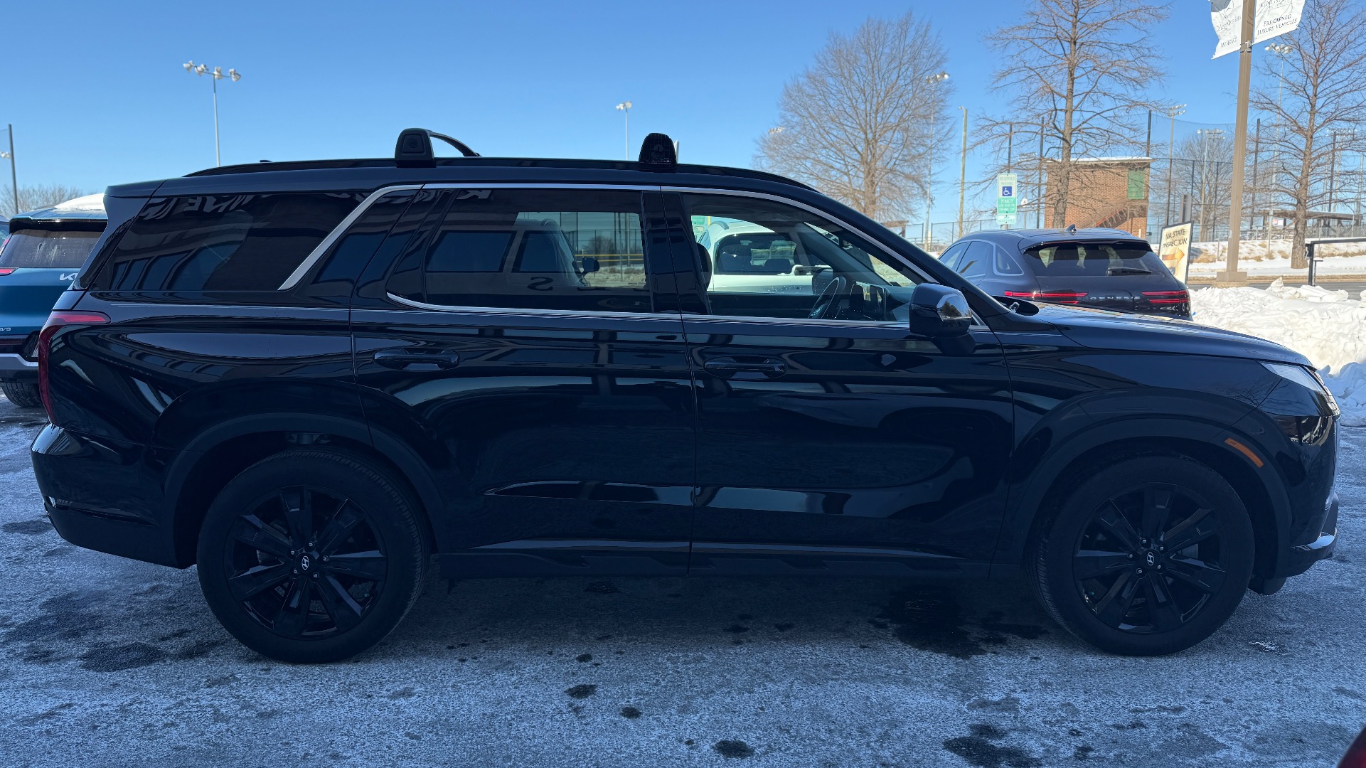 *** ONE OWNER / MSRP $46K / ALL-WHEEL DRIVE /PALISADE XRT AWD / 20” XRT EXCLUSIVE ALLOY WHEELS / HTRAC AWD / SMART CRUISE CONTROL / HEATED FRONT SEATS / SURROUND VIEW MONITOR/ HIGHWAY DRIVING ASSIST/ WIRELESS PHONE CHARGER/ SUNROOF*** this abyss black exterior with black interior is powered by a 3.8l v6 engine with idle stop & go paired to an 8-speed automatic transmission with paddle shifters and htrac all-wheel drive; standard safety features include front, front side, side-curtain, and driver’s knee airbags, forward collision-avoidance assist, lane keeping assist lane following assist, driver attention warning, blind-spot collision warning, rear cross-traffic collision-avoidance assist, parking distance warning forward and reverse, rearview camera, immobilizer, and government 5-star safety rating; exterior features include 20” xrt exclusive alloy wheels, led headlights, led daytime running lights, led tail lights, auto-dimming heated side mirrors, black roof side rails and cross rails, sunroof, and temporary spare tire; interior features include smart cruise control, highway driving assist, surround view monitor, dual automatic temperature control, auto-dimming rearview mirror, proximity key with push button start, h-tex seating surfaces, power front seats, heated front seats, 2nd row captain’s chairs, manual rear side window sunshade, hands-free smart liftgate with auto open, front and 2nd row usb ports, and 12.3” navigation system with am/fm/hd radio; multimedia and connectivity features include android auto® and apple carplay®, wireless phone charger, digital key, siriusxm® radio with 90-day trial subscription, bluelink® all-inclusive connected services (enrollment required), wi-fi hotspot (trial included with bluelink®), and full tank of fuel; added features include cargo blocks, carpeted floor mats, cargo net, cargo cover, first aid kit, rear bumper appliqué, wheel locks, and much more… *** CARFAX CERTIFIED & VA INSPECTED *** NATIONAL SHIPPING AT ADDITIONAL COST *** REMAINING FACTORY WARRANTY ***